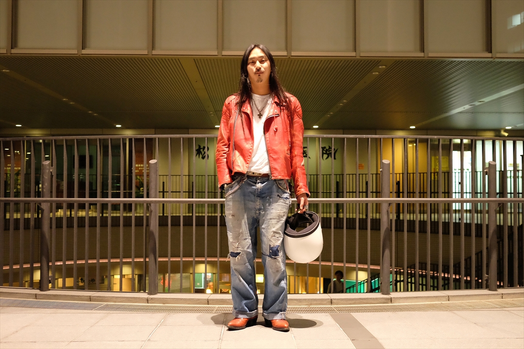 身体に馴染んだレザーの鮮やかなジャケット。