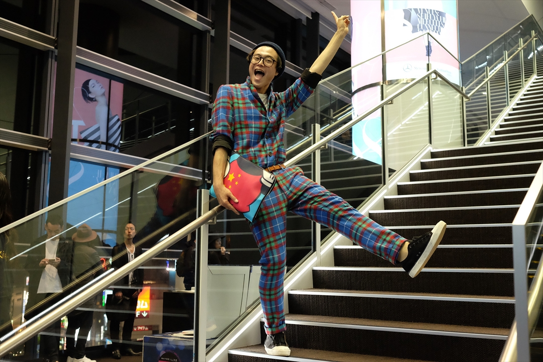 Monday, 7 December 2015 at the show...Shibuya Labels STREET Hello again, Yu-kun, funnest Tokyo fashioninsta ! イエーイ、な一枚。ゆうくんは、ファッションを謳歌してる。「明日は何着ようかな」って考えてるのが全然シリアスではなくて(「自己表現」とか「何を着るべきか」とか思弁や義務から遠いところにいるのだ。)単に楽しみとしてやってる。 彼にとってファッションは、遊び道具の一つ。